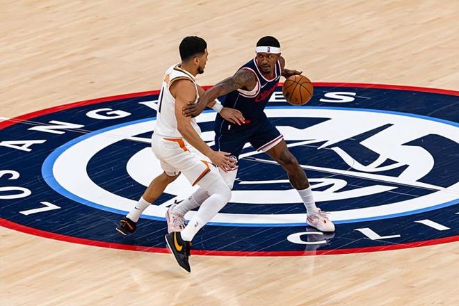 本场比赛中,快船的先发得分后卫布拉德利-比尔(Bradley Beal)伤愈复出了,不过他的整体表现只能算是中规中矩。比尔全场出场21分11秒,投篮8中3,三分线外2中1,罚球2中2,得到了9分1篮板2助攻的数据,还有1次失误和2次犯规,正负值为+5。比尔的出场时间依然是受到了明显的限制,他的出手次数也不算太多,这也导致了他没有办法完成更多的得分。其实我们也能够感受到,比尔的状态不算特别糟糕,他也具备一定的分享球能力,他在防守端也是勤勤恳恳比较努力的,他也愿意为球队提供全方位的支持。只是他的出场时间确实是略少了一些,他也确实是没有办法在这种情况下打出更加华丽的数据了。